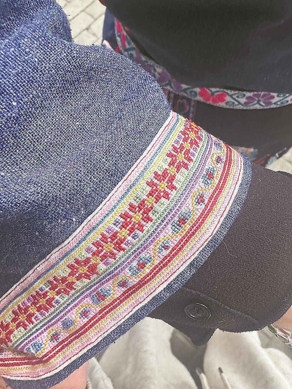 r“两股丝线要拧紧,反复搓转后再绣到布上。”12月2日午后,在青水畲族乡的一家杂货店门口,三名一稔畲族传统衣饰的绣娘正围坐一都,她们手中穿梭着七彩的丝线,话题则围绕着陈旧的畲绣针法伸开。